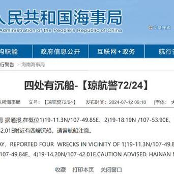 日前,“琼航警72/24”航行警告提到,在北部湾的4个位置上出现了4艘沉船,一时间很多人就炸锅了,认为这和不久前凉月号驱逐舰闯入浙江沿海附近有关。实际上,几乎一点关系没有。